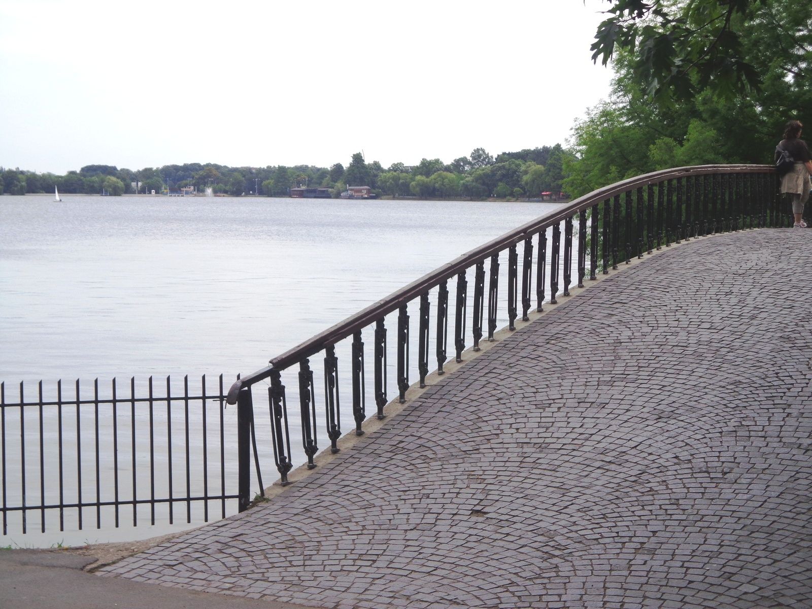 La promenade amène naturellement à un pont sur le lac pour continuer à cheminer dans la verdure.